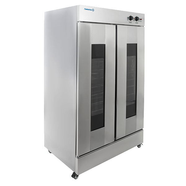 Расстоечный шкаф Foodatlas FJ-26 – важное оборудование, применяемое для оснащения помещений для приготовления хлебопекарных и кондитерских изделий. Его основная задача – обеспечение технологически правильной расстойки заготовок из теста после того, как тесто было извлечено из тестомеса и помещено в формы. Тестовые «полуфабрикаты» расстаиваются в шкафу до того момента, пока не будут отправлены в печь.